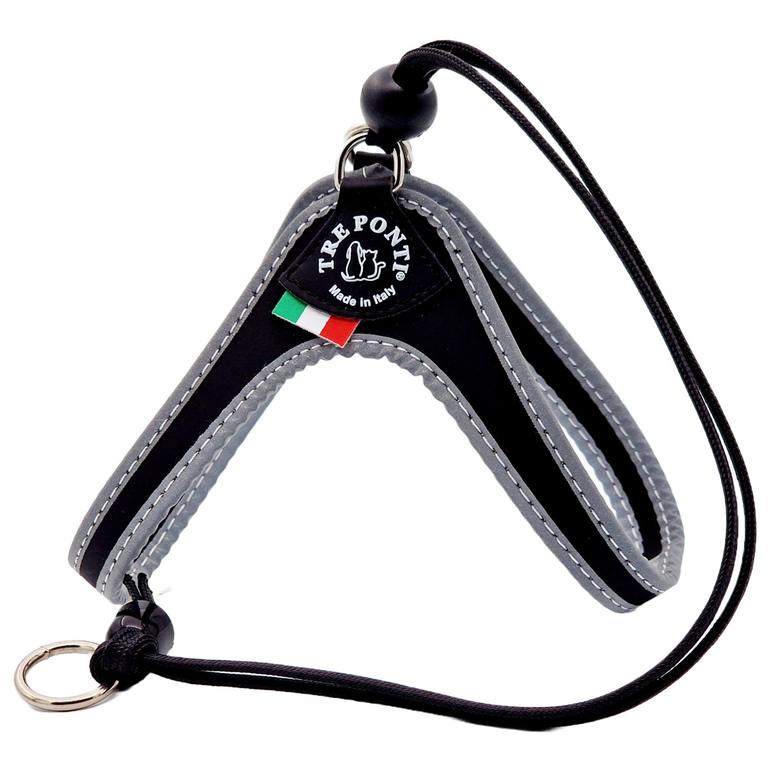 Tre Ponti Liberta Geschirr Schwarz&Reflexion - Hundegeschirr - 37 - 47 cm Bis 6 kg