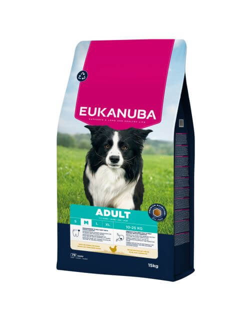 Getrocknetes Huhn und Pute: 28% ﴾Huhn 16%﴿, Weizen, Mais, tierisches Fett, Sorghumhirsemehl, Gerste, getrocknete Zuckerrübenschnitzel ﴾2,9%﴿, hydrolysierte tierische Proteine, Trockenvollei, Kaliumchlorid, Fischöl, Natriumchlorid, Natriumhexametaphosphat, Kalziumkarbonat, Fructooligosaccharide ﴾0,29%﴿, Leinsamen.