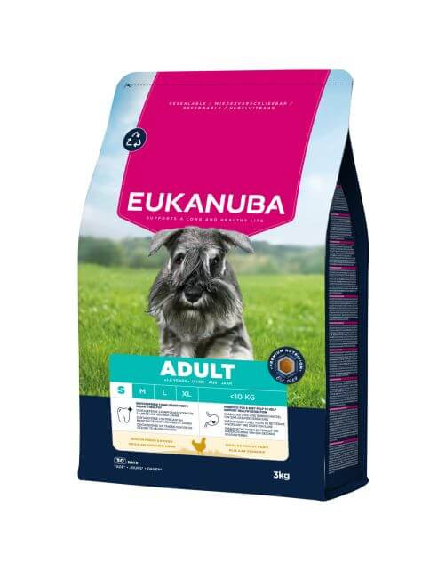 Gedroogde Kip En Kalkoen (32%), Tarwe, Maïs, Dierlijk Vet, Sorghum, Rijst, Gerst, Gehydroliseerde Dierlijke Eiwitten, Gedroogde Bietenpulp (3,1%), Gedroogde Hele Eieren, Kaliumchloride, Visolie, Lijnzaad, Natriumchloride, Natrium Hexametaphosphaat, Fructo-Oligosacchariden (0,28%), Calciumcarbonaat